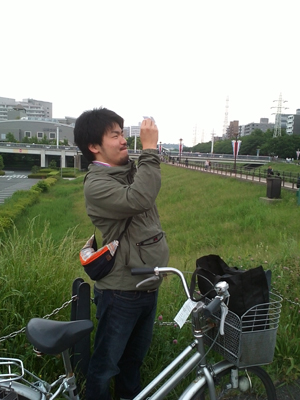 日食見えず 未選択 2012年05月21日 金環日食雲の切れ目から期待していたのですが、ついに見ることはできず・・・。ラジオを聞いていたのですが、各地の中継では、見えた、見えたの報告が!東京でもうっすら見えたらしく、見えなかったのは横浜あたりだけのようです。残念!毎日の通勤の道は、日産スタジアム近くの田舎道。太陽をみるのに絶好の場所。いつもにくらべ期待を胸にたくさんの人がいました。とてもにぎやかな朝でした。そんな人に混じって、写真は偶然遭遇した人です。朝早くから準備していたようで、かなり残念がっていました。shimada