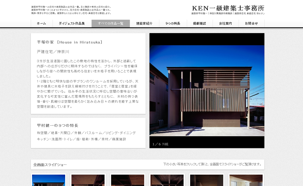 掲載雑誌のお知らせ 最新情報 2014年03月27日 掲載雑誌のお知らせです。先日竣工した「代々木の家」と「平塚の家」が新建築社発行の「住宅特集4月号」に同時掲載されました。 計18ページに渡り掲載されておりますので、是非ご覧下さい。KEN一級建築士事務所の特集かと思う程のボリュームです◎平塚の家はすでにホームページに掲載されておりますが、代々木の家も近日中にアップする予定ですので今しばらくお待ち下さい。mogi