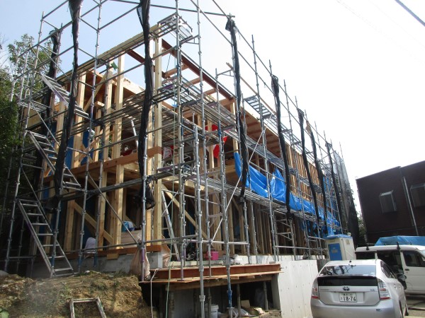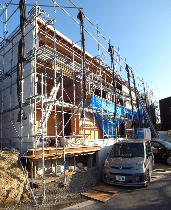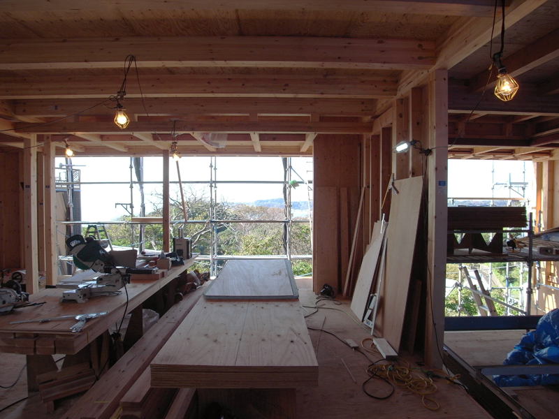 材木座の家(4) 最新情報 2017年11月09日 材木座の家は中間検査が行われました。確認審査機関の方が現地検査を行い、建築基準法通り施工されているかを確認します。もちろん指摘項目0で合格を頂きました! これで現場は一気にスピードアップし壁面やサッシを取付けていきます。 冬も近づき山頂に吹き付ける風も冷たくなってきましたがサッシが取付くと職人さんも作業がしやすくなるのではないかと思います◎mogi