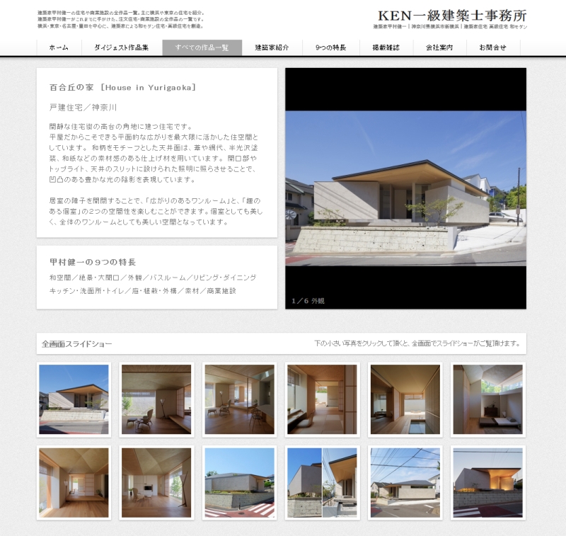HP更新のお知らせ 最新情報 2016年06月17日 ホームページ更新のお知らせです。 すべての作品一覧に「百合丘の家」を追加しました。三方道路という特性を活かして全方位から光を取り入れ天井の素材感によって陰影を表現した平屋建ての住宅です。是非ご覧ください。mogi