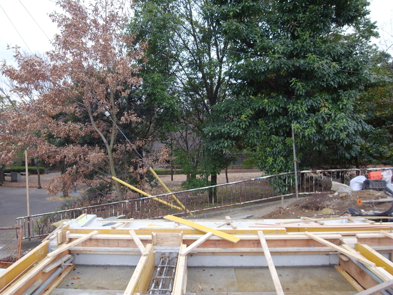 中川の家(8) 現場報告 2014年12月12日 中川の家は地階の型枠が外れコンクリートの壁が姿を現しました。 ビシっと綺麗に打ちあがっています。 和室となる場所からの立ち位置。新緑の季節には緑の綺麗な木々が窓から切り取られます。これから切り取られる箇所がどんどん姿を現していくのが楽しみです◎mogi