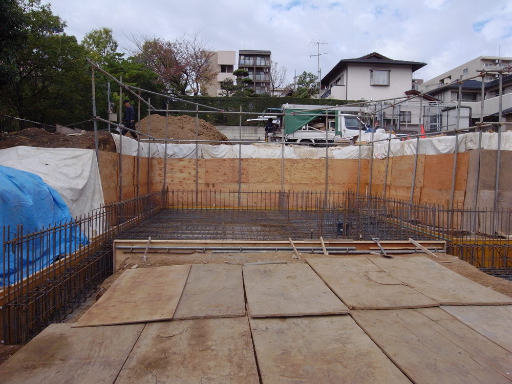 中川の家(4) 現場報告 2014年11月06日 いよいよ中川の家の施工が本格的に始まりました。 本計画は地階が計画されているため、道路側の土をごっそりと取りのぞいたのですっかりと様変わりしてきました。現在は鉄筋を組みコンクリートを打つための準備中です。少しずつ立ち上がっていく様子が楽しみで仕方ありません◎mogi