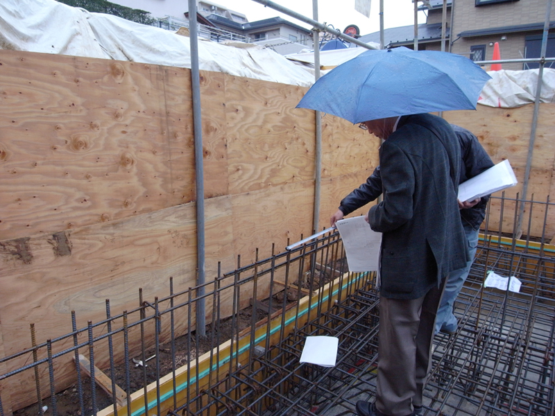 中川の家(5) 現場報告 2014年11月12日 中川の家の中間検査が行われました。 今回はRC造部の基礎配筋検査でした。建物にとって最も大切な足元まわりの配筋が図面通りに実施されているかを確認審査機関の審査員の方とともにチェックをしていきます。特に問題もなく無事合格証を頂くことができ、工事はまた次のステップへと進んでいきます。mogi PR