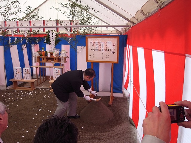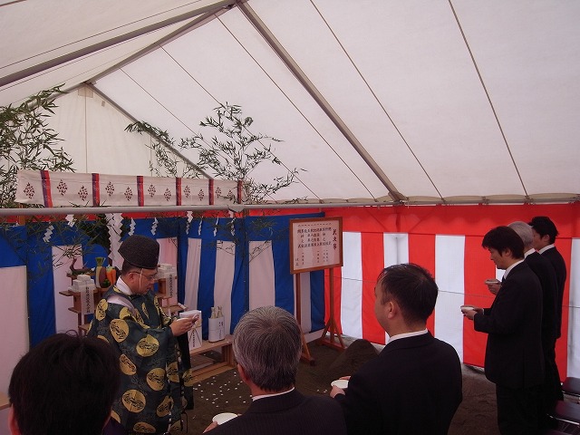 地鎮祭 現場報告 2014年02月28日 本日、Sセレモニーホールの地鎮祭がありました。工事の安全を祈って行われました。気持ちの良い春の陽気を感じる素晴らしい日でした。 3月から着工が始まり、来年の2月ごろには完成します。これから竣工まで現場の状況を随時報告していきますsouhei