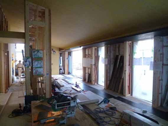 鴨川の家(16) 現場報告 2011年12月22日 現場では、内装下地工事が進んでいます。養生されているのでわかり難いですが、床はすでにフローリングが貼られています。又、天井・壁も大部分がボードで閉じられています。本年度中に、ほぼ下地工事は完了し年明けからは仕上げ工事に入ります。by koji