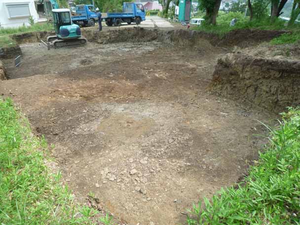 鴨川の家(2) 現場報告 2011年07月06日 先週から現場が着工しました。まずは、地盤の根切工事が進んでいます。地盤調査は、着工前に行っていますが、実際に掘った時点で、再度土の状態を確認します。今後は、地盤改良工事が進みます。竣工は、来年の1月となり、約半年の工事期間となります。by koji