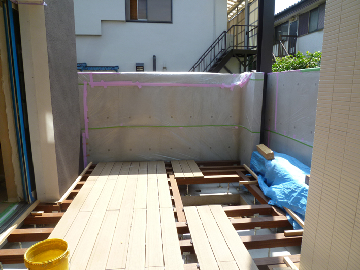 大倉山の家(15) 現場報告 2011年07月08日 今週の現場。工事も終盤にさしかかり現場ではデッキを貼っていました。下地工事を終え、一度現場を離れていた大工さんと再開し、少し談笑をしてしまった楽しいひと時でした。yama