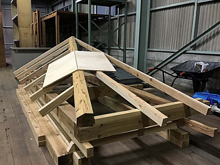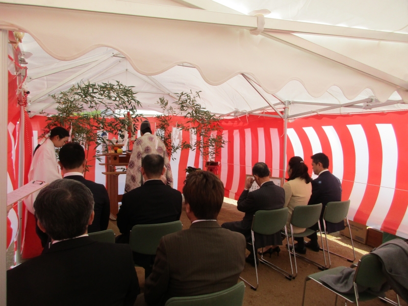 防府の家(7) 現場報告 2017年12月04日 防府の家は地鎮祭が執り行われました。防府天満宮の神主さんと巫女さんが工事の無事をお祈りした立派な祭事となりました。 地鎮祭が終わるといよいよ工事が始まるなと身が引き締まる思いです。 施工店さんと大工さんによる立派な屋根の試作も出来上がり着々と工事準備も進捗しています。春先の上棟が待ちきれません!mogi