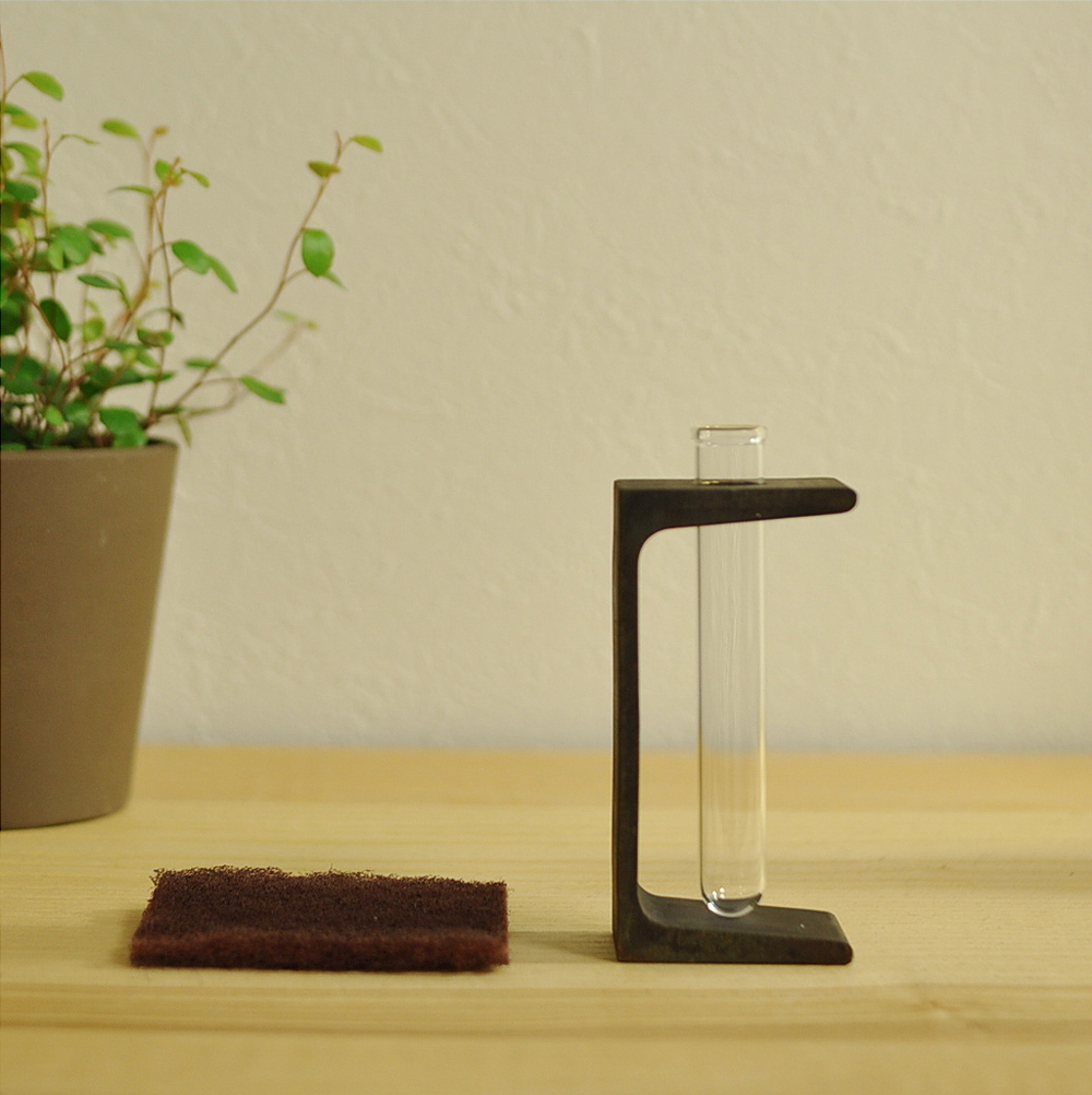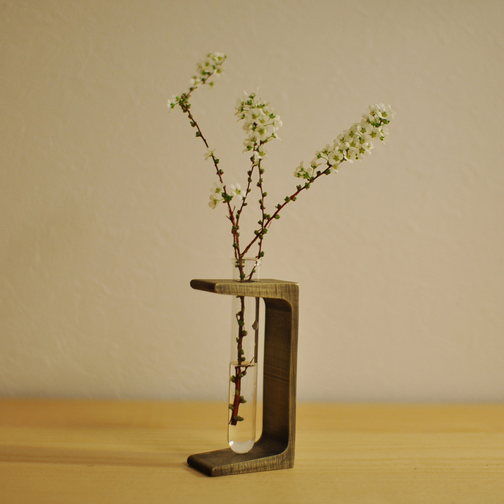 一輪挿し 所員の趣味 2015年03月16日 建築家 谷尻誠さんが代表を務めるSuppose Design Officeが販売している「kata」というシリーズの一輪挿しを購入しました。 このシリーズはH鋼や溝形鋼などの建築鋼材にほんの少しの手を加えて身近なプロダクトにしているものです。材質は真鍮製。納品時には下写真のように真っ黒の状態ですが、金たわしのようなもので磨き、自分の好みの風合いに仕上げることができます。 ひと手間加えるプロダクトが大好きな僕としては即決で購入してしまいました。殺風景な我が家でしたが、これからは少し季節を感じながら生活を送れそうです◎mogi