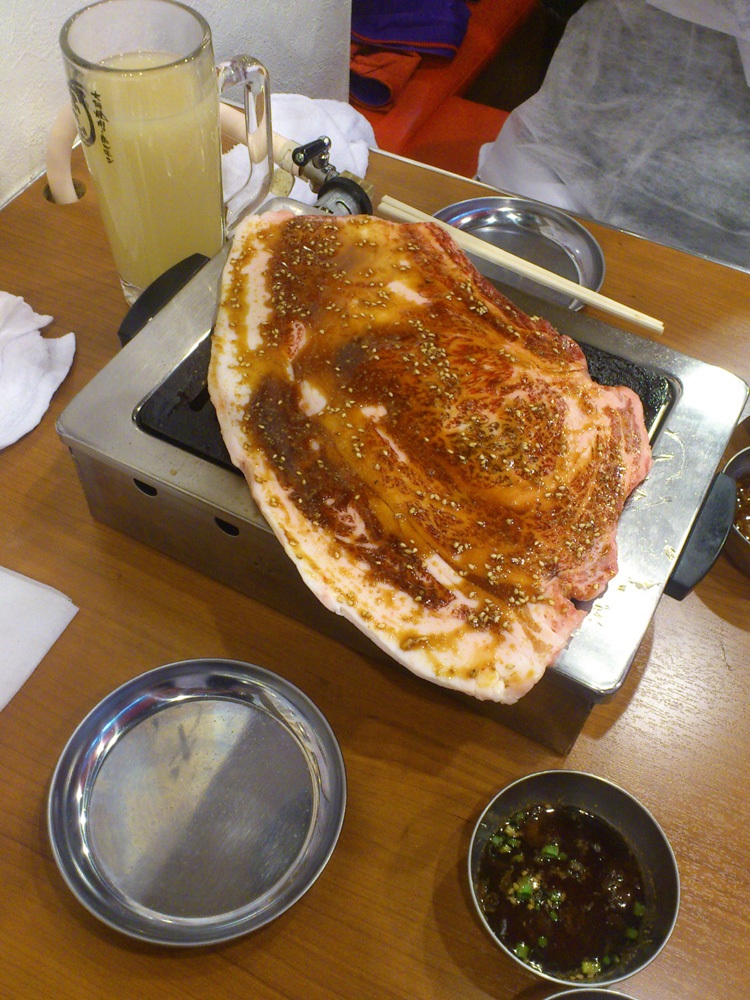 これぞ焼肉 食いしん坊Jr. 2013年05月24日 焼肉屋「ふたご」の定番メニュー。その名も、はみ出るカルビ!黒毛和牛のリブロースを使用し一度に4つの部位が楽しめる一品です。この他にも珍しい部位の焼肉が多く、一品一品店員さんが焼きながら、丁寧に説明してくれる楽しいお店です。mogi