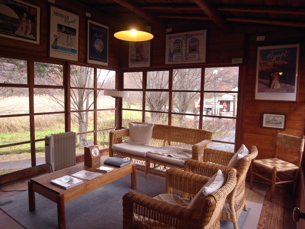 軽井沢3 ペイネ美術館 建物探訪 2012年12月03日 2つ目に行ったのはペイネ美術館です設計はアントニン・レーモンド元はレーモンドの別荘兼アトリエとして建てられたものが移築されレイモン・ペイネの美術館になっています移築される前は擁壁の上に立ち池に向かって張り出したような建ち方をしていました今はその面影はなく、なんとなく地面にへばりついたような少々不恰好なプロポーションになっています最大の特徴であるスロープとバタフライ屋根は丸太でつくられていることもあり迫力のある内部空間になっていましたしかし本来の敷地から切り離されてしまったこの建築からは魅力はあまり感じることができませんでしたこの部屋も移築される前は斜面に張り出した気持ちのいい部屋だったようです...昔の写真↓もとの敷地にあるときの空間を感じてみたいものですiwanami PR