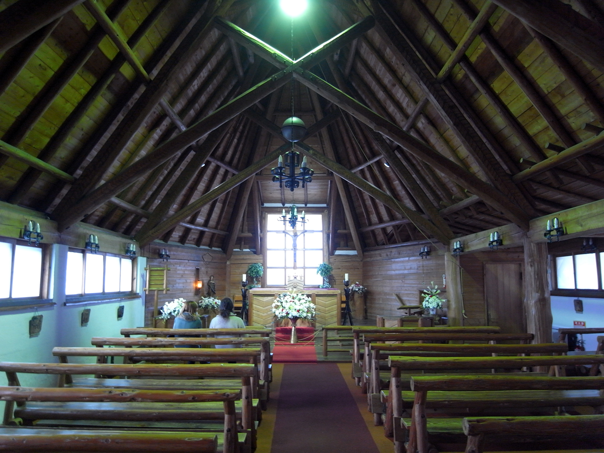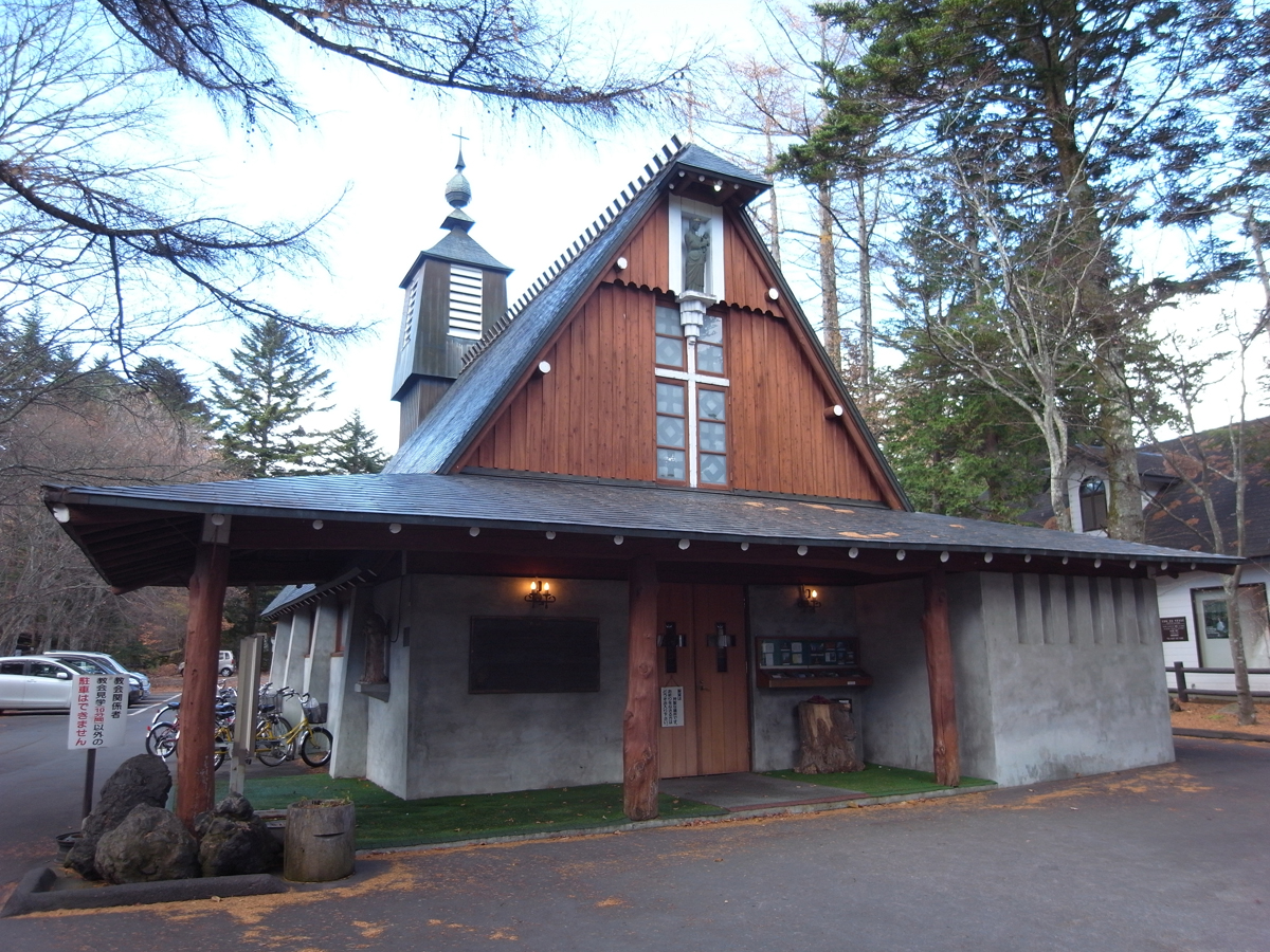 軽井沢4 聖パウロカトリック教会 建物探訪 2012年12月10日 ペイネ美術館の設計者レーモンドが軽井沢に設計した教会があります軽井沢銀座からチャーチストリート軽井沢というショッピングストリートを抜けると正面に見えてくるのが聖パウロカトリック教会です打放しの壁と三角屋根、深い軒が特徴的です内部は屋根の下地や支える丸太のトラスが露出して優しい雰囲気ですとても小さな教会ですがたくさんの人が訪れ軽井沢のシンボルになっているようでしたiwanami PR