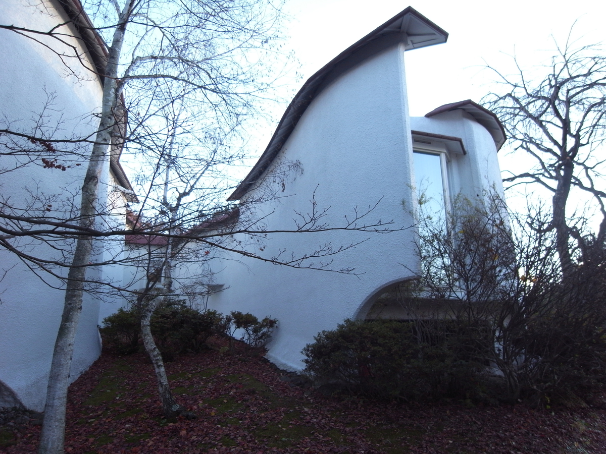軽井沢5 小山敬三美術館 建物探訪 2012年12月17日 紹介するのは軽井沢からは少し離れた長野県小諸市にある小山敬三美術館です設計は村野藤吾以前紹介した千住博美術館と同様に敷地の傾斜にあわせて床が傾いていますお互い珍しい特徴を持っていますが小山敬三美術館が千住博美術館と大きく異なるのは千住~がガラスで囲まれた透明で明るい公園のような建築であるのに対して小山~は荒々しい壁の中を掘りすすめた洞窟のような建築ですまた千住~は大きな平屋で外観がない(と言っても過言ではない)建築ですが小山~は村野らしい自由な造形のダイナミックな外観となっています地面から生えてきたような造形は多くの村野建築に見られる特徴です他にも千住~との比較や小山~の特徴など書きたいことはまだまだありますが長くなりそうなのでこの辺でやめておきますとても小さな美術館ですがまた行きたくなる建築でしたiwanami PR