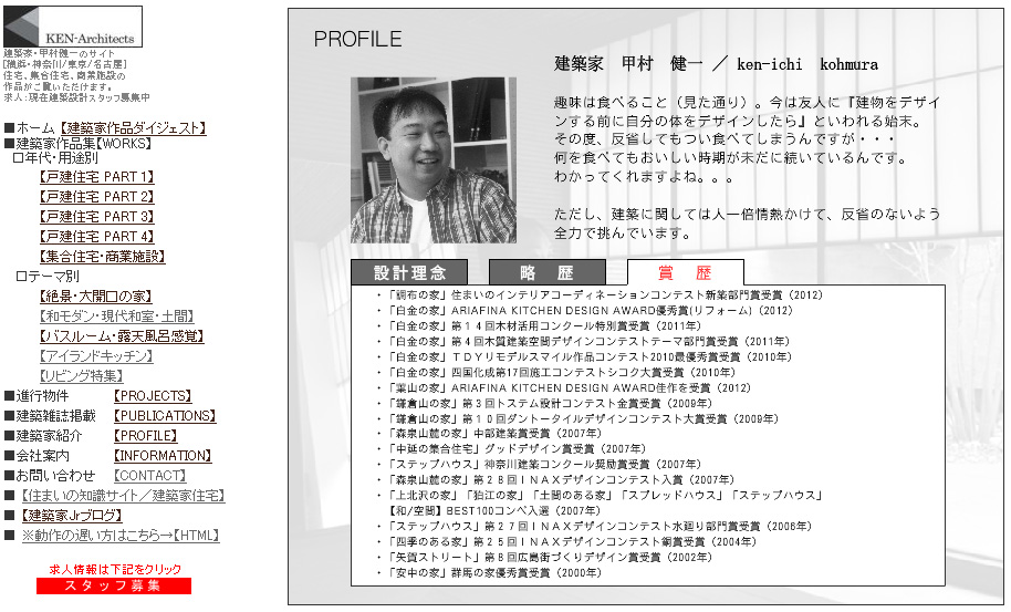 HP更新 最新情報 2013年01月09日 2013/01/08にHPを更新しました。【戸建住宅 PART 2】調布の家【PUBLICATIONS】新建築 住宅特集 2013年1月号【PROFILE】調布の家にて昨年末受賞した住まいのインテリアコーディネーションコンテスト新築部門賞更新内容は上記の3箇所です。悪戦苦闘しながら初めて更新したので、よろしければご覧下さい!mogi PR