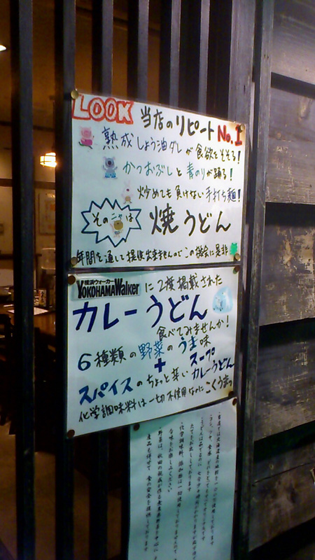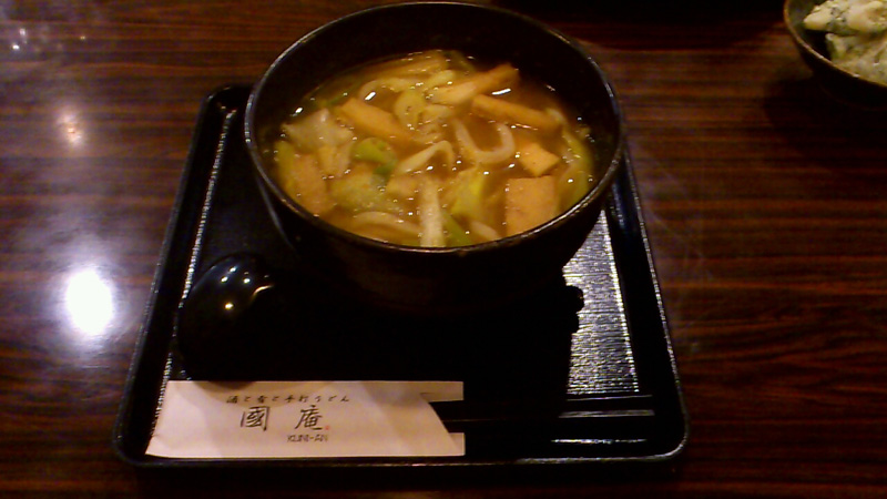 カレーうどん 食いしん坊Jr. 2013年04月14日 我が家の近所にヨコハマウォーカーに掲載されたカレーうどん屋さんがあると、岩波さんから聞きつけ早速調査してきました。店名は「國庵(KUNI-AN)」店内は昭和感溢れる内装で、ジャズが流れる落ち着いた雰囲気。店長こだわりのカレーうどんと焼きうどんを食しました。カレーうどんはどろみがなく和風だしの効いたさらさらなスープ。焼きうどんは香ばしい香りが食欲をそそります。どちらも癖がなくシンプルなのですが、食べ進めるにつれて癖になる味の深みがありました。めったにスープを飲みきらない僕が飲みきった程です。ただし、焼きうどん1000円は。。mogi PR