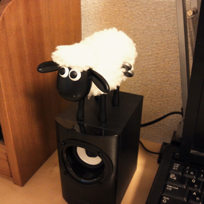 ひつじのショーン ひとりごと 2013年05月09日 「ひつじのショーン」のおもちゃをスピーカーの上においてみました。「ひつじのショーン」というのは「ウォレスとグルミット」で有名なアードマン・アニメーションズというアニメーション制作スタジオで作成されているクレイアニメのメインキャラクターです。最近では、NHKで放送されているらしいので是非みてみて下さい。MIUZNO PR