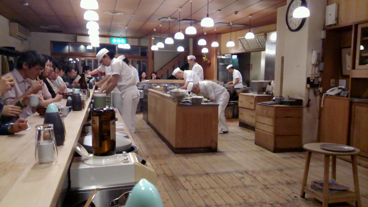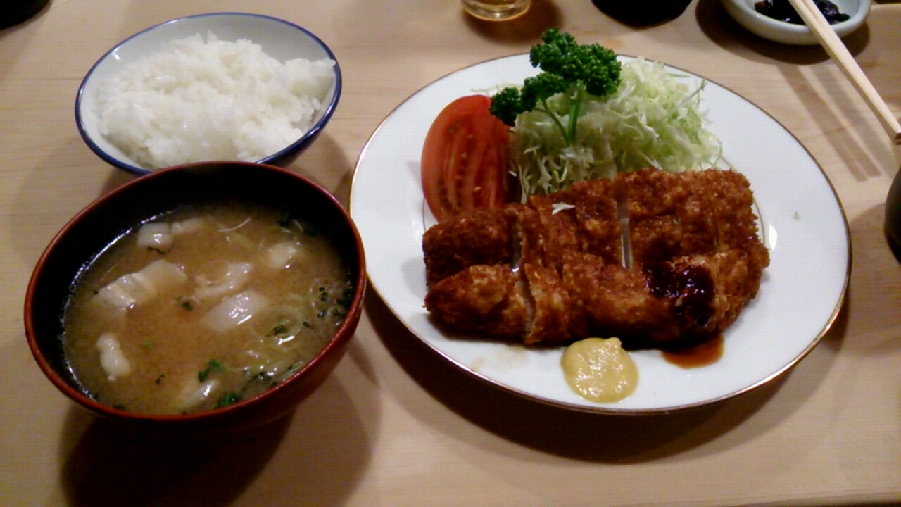 とんき 食いしん坊Jr. 2013年06月07日 目黒にあるとんかつ屋の「とんき」に行ってきました。1939年創業の老舗です。この店はとんかつの美味しさもさることながら従業員の方々の絶妙なチームワークに驚かされます。さながら劇場型とんかつ屋です。店内はオープンな厨房のまわりにぐるりと配置されたカウンター席が並びます。磨きこまれた桐のカウンターはさわり心地良く清潔感があります。席についてから10分程度の待ち時間、従業員の方々の流れるような作業を観覧します。従業員の方々は完全分業制。案内役、油の管理役、衣をつける役、揚げる役、切る役、運ぶ役等々、15人程度の従業員の方々がそれぞれ指示をするでもなく、黙々と自分に課された仕事をまっとうしていきます。その洗練されたチームワークからは独特の緊張感が発せられます。とんかつは普通のとんかつとは異なり、はかれやすい独特の衣が特徴。ご飯と豚汁はおかわりし放題!この雰囲気と味は言葉で言い表せないので、目黒にお立ち寄りの際はぜひ!mogi PR