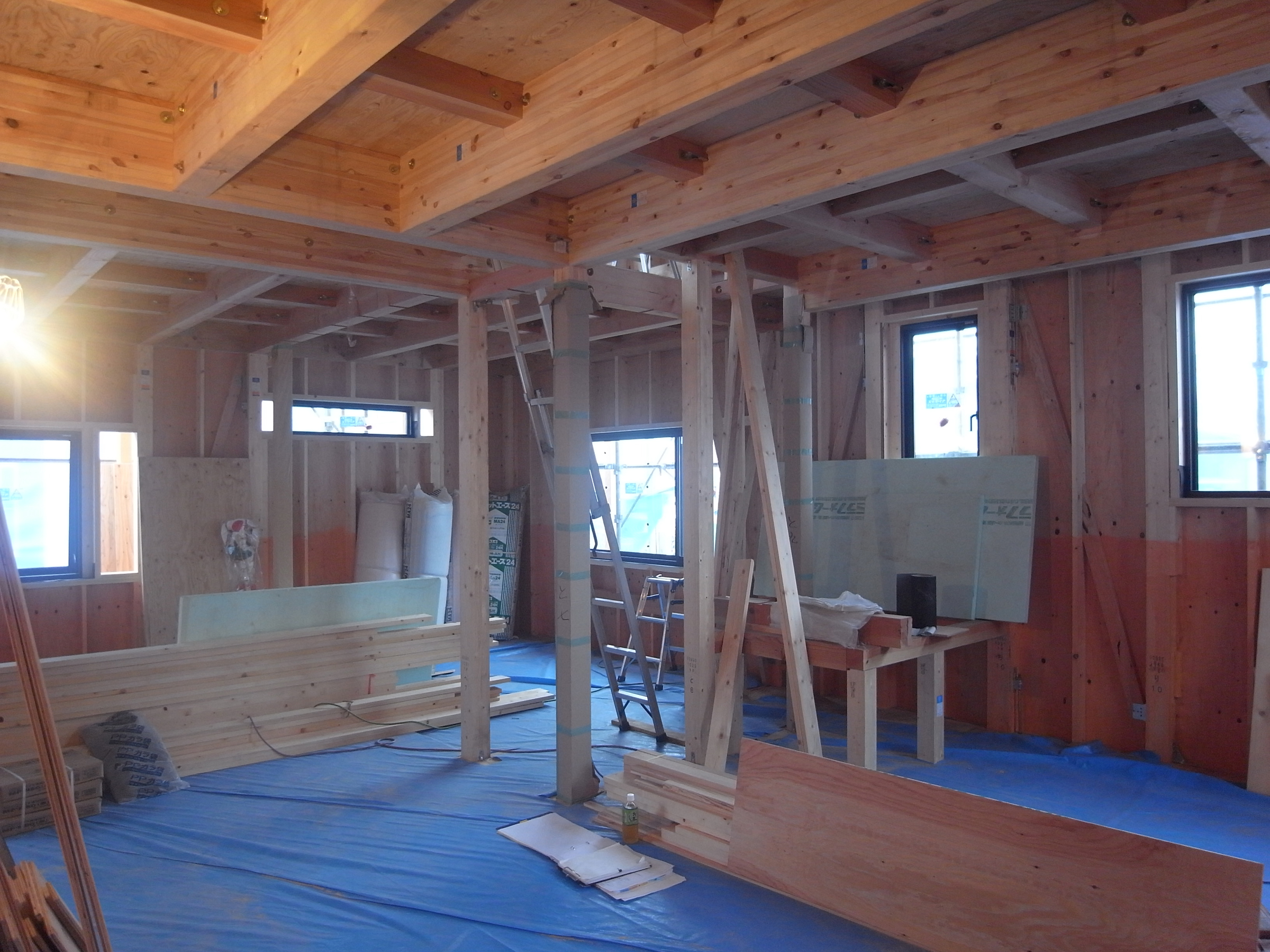 平塚の家(3) 現場報告 2013年07月17日 平塚の家は現在外壁の合板が貼られサッシが取り付けられています。写真だと見難いですが...目を凝らしてください内部の壁はまだ先ですそのため北面西面の開口部が一同に視界に入るという完成時には見られない景色を望むこともできますiwanami PR