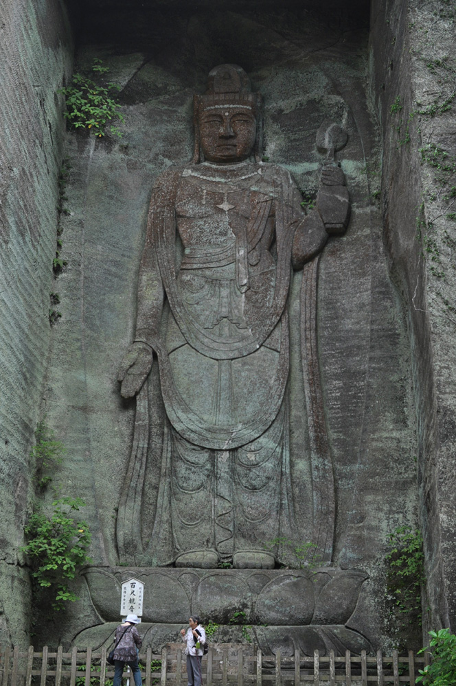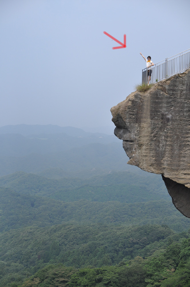 夏休み[鋸山編] ひとりごと 2013年08月20日 夏休みを利用して千葉県鋸山へ行ってきました。横須賀の久里浜港からフェリーで40分。横浜市民はアクセス良く訪れられる秘境です。名物は「地獄のぞき」と「百尺観音」。 山頂にある地獄のぞき。矢印の先にいるのが僕です。手すりがあるとはいえ、なかなかのスリルを味わうことが出来ます。 下からの見上げ。高い! 人のサイズと比べるとその大きさがよく分かる百尺観音。眺めも良く、楽しい秘境でしたが、その眺めを堪能するためには炎天下の中、数百段に及ぶ階段地獄が待ち構えています。。真夏に行かれる方は覚悟して訪れてください!次回、夏休み[猿島編]へつづく。mogi PR