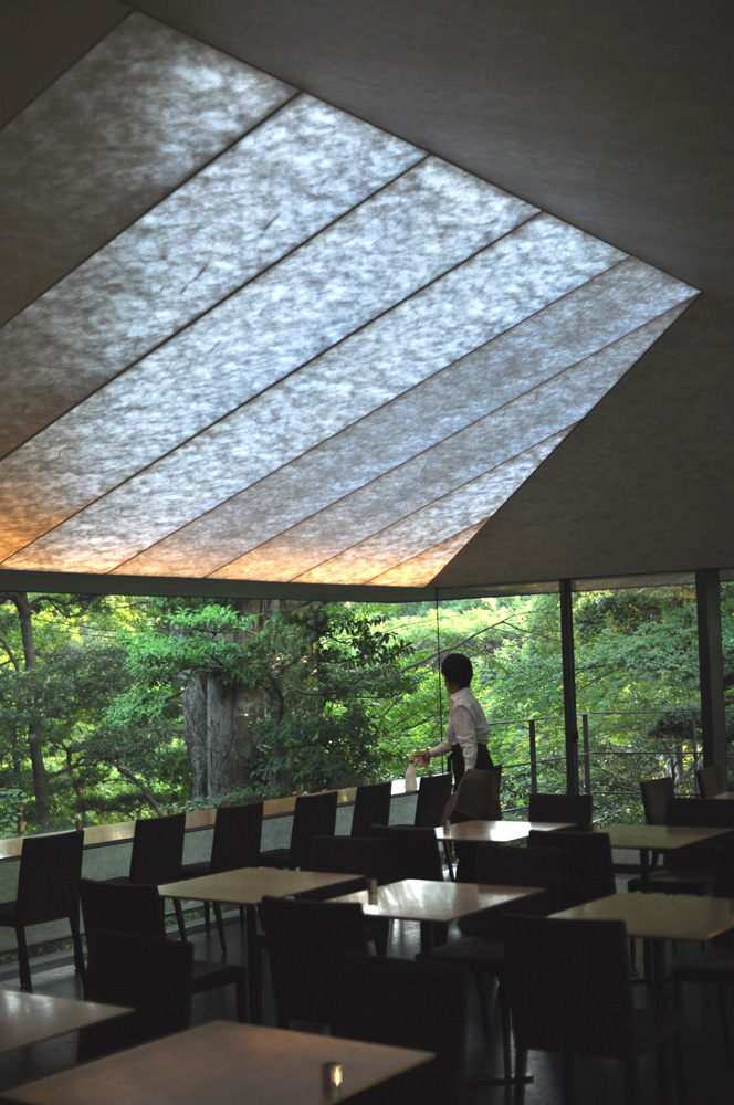 根津美術館 建物探訪 2013年09月13日 東京は南青山に建つ隈研吾さん設計の根津美術館へ行ってきました。 根津美術館といえば、このアプローチと屋根のディテール。尖ってます。 館内は東京のど真ん中とは思えない程の外部の豊かな緑をふんだんに取り込んでいます。しっとりとした陰影と緑のコントラストが美しい! 隣接しているNEZU CAFEも心地良い空間になっているので、お立ち寄りの際は是非コーヒーを飲みながら、豊かな緑を感じてみてください。mogi PR