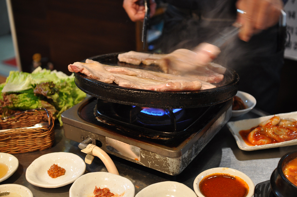 韓国 焼肉 食いしん坊Jr. 2014年07月11日 とんちゃん 渋谷店という韓国焼肉店に行ってきました。渋谷に2店舗あるそうなのですが、両店ともに常に満席の人気店だそうです。 人気の秘訣はなんといってもボリューム!1000円程度のサムギョプサルを注文すると、頼んでもいないサンチュ・タコの素焼き・ユッケジャンスープ等が大量に運ばれてきます。味付けも色々変えることができるので最後まで美味しく頂けました◎mogi PR