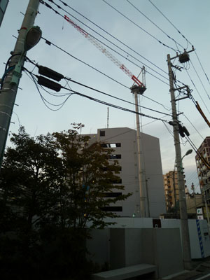 H社マンション棟(3) 現場報告 2014年10月31日 先日、H社マンション棟の工事現場にタワークレーンがたちました。 髙いです。本体部分(折れ曲がっている部分)の高さが28mくらいとのこと。今回計画しているマンションはそれよりも高くなります。楽しみです!MIZUNO PR
