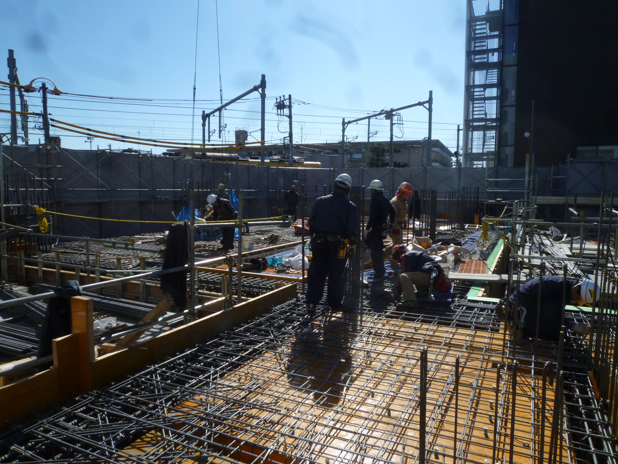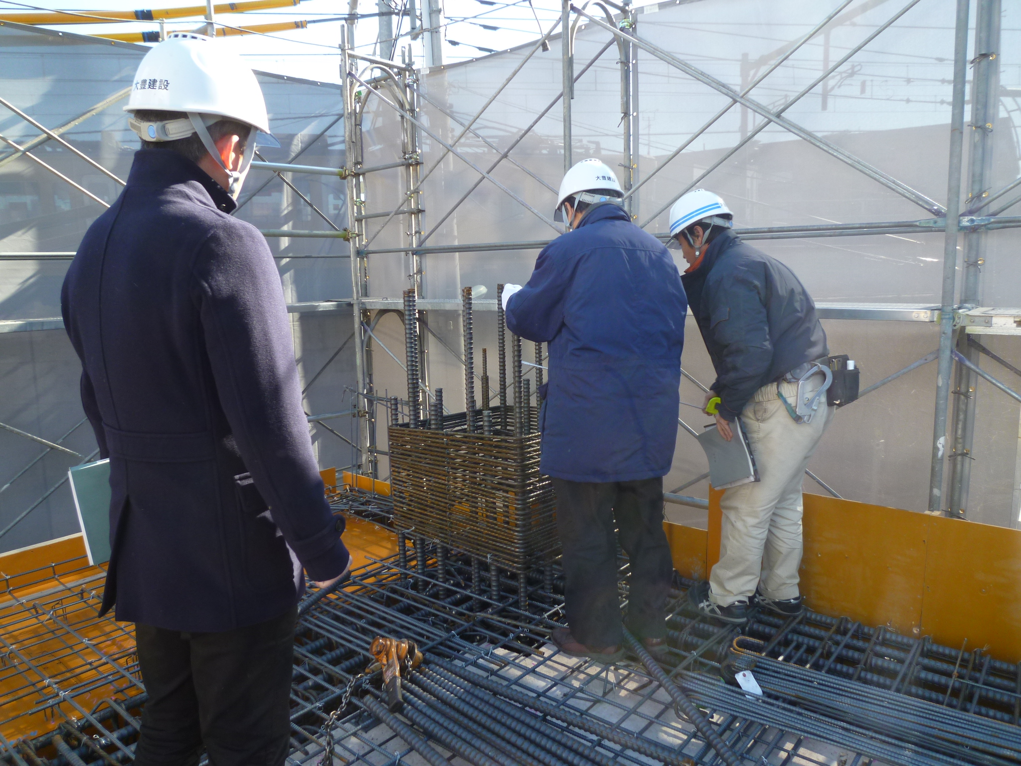 H社マンション棟(5) 現場報告 2015年02月12日 H社マンション棟の現場報告。先日、確認検査機関の中間検査を受け、2階床までのコンクリートの打設をしました。只今、3階床の配筋・型枠工事中です。 現場全景(中間検査時) 構造設計者立ち会いのもと、中間検査をしているところ。MIZUNO PR