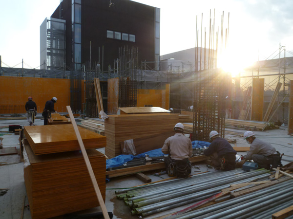 H社マンション棟 現場報告 2015年03月09日 H社マンション棟では、3階床のコンクリーと打設が終わり今は4階の型枠。そして、1階の型枠ばらしが行われています。11階建なので、この4倍くらいの高さになります。 工事状況の全景。開口位置の確認もできました◎このマンションは全部で10タイプの住戸があります。これは、Cタイプ。 細かい部分も見て回ります。MIZUNO PR