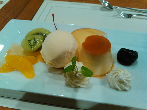 ニューグランドホテル(@元町) 食いしん坊Jr. 2015年12月01日 先日のこと、プリン好きの両親が横浜に来ました。たって希望でニューグランドホテル内の「ザ・カフェ」にてプリンアラモードを食べてきました。戦後間もない頃、このホテルでプリンアラモードが生まれたらしく、プリン通には有名なお店のようです。 プリン自体はしっかりとした固め味は甘すぎないさっぱりしたものでした。一緒に盛られた生クリームやアイス、フルーツたちと一緒に食べることを念頭においた味。プリン単体で主張することなくあくまで皿全体の調和がとれている。老舗の味に感服です。ちなみにホテル内も十分に見学させて頂きました。 MIZUNO PR