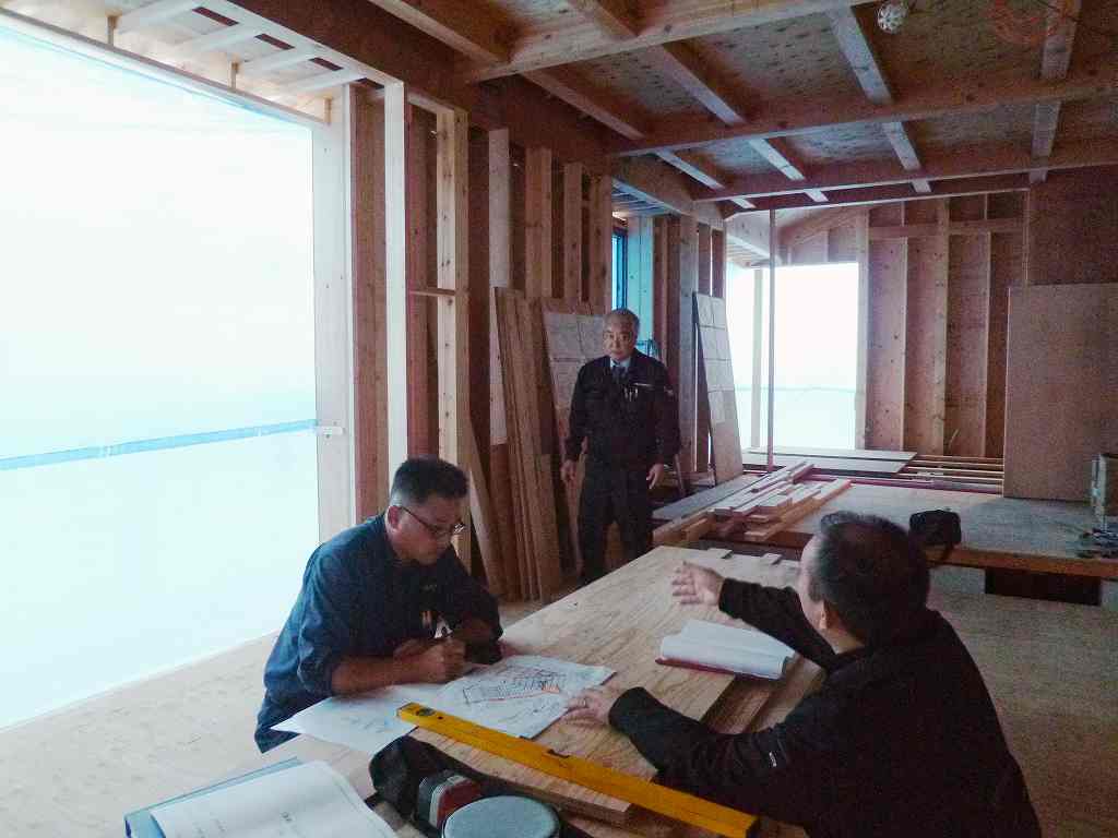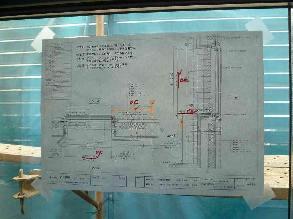 百合ヶ丘の家(5) 現場報告 2015年11月16日 現場定例を行いました。今まで作成した図面を基に、正確につくられているかを確認していきます。 細かな打合せを重ねていきます。 サッシ(窓)が取り付きました。(まだガラスは入っていません)サッシ詳細図を基に確認していきます。内壁が建つことで、内観のイメージがわかりやすくなります。左が現場、右がプレゼン模型写真 イメージはそのままに立上っています。完成が楽しみです。souhei PR