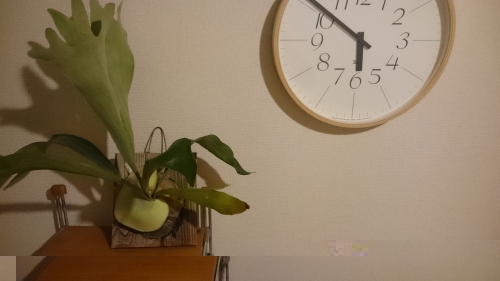 コウモリラン 所員の趣味 2016年11月02日 家で育てているコウモリランが大きくなりました。雑貨屋でもおしゃれアイテムとして売られています。普段はこんなことしてませんが、ブログ用ということで、我が家のおしゃれ時計とコラボしたそれっぽい写真を撮りました。 時計(約30cm)と並ぶと、コウモリランが大きくなったことがわかります。もっと大きくなるように、頑張って育てます。souhei PR