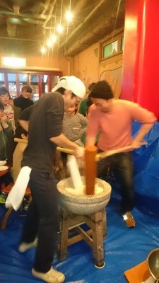 餅つき 食いしん坊Jr. 2017年01月16日 先日、いつも通っている飲み屋のイベントで、小学生以来の餅つきをしました。 ちゃんと臼と杵もあり本格的です。実際について作ったお餅はとても柔らかく。トッピングには、珍しい醤油や、ずんだ、とろろ昆布、オストアンデルというたい焼き屋さんからもらった餡子を使うなど、かなりのこだわりがあって、とてもおいしかったです!来年もやりたいなと思いました。souhei PR