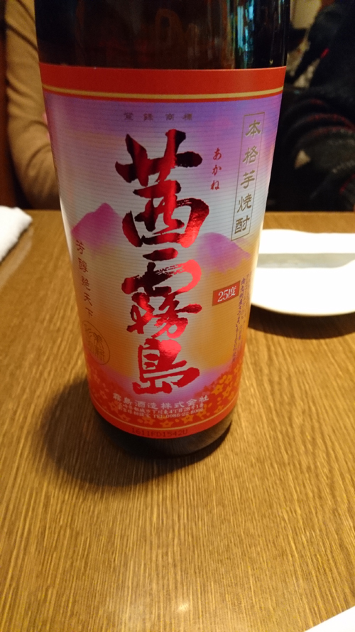 茜霧島 所員の趣味 2017年03月13日 先日、家族で食事をした際、両親が珍しいお酒があるよと飲ませてくれたのが、茜霧島でした。 黒・白・赤は知っていましたが、茜は初めてでした。季節限定らしく、なかなか手に入らないそうです。そんな茜霧島をボトルキープしている両親にびっくりでした。焼酎はあまり詳しくないのですが、黒と比べ、とても甘く飲みやすいお酒でした。また飲んでみたいです。souhei PR
