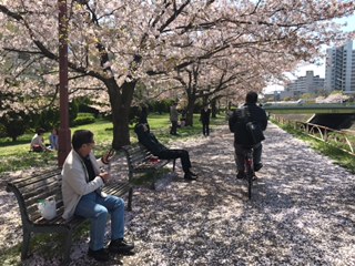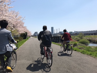 サイクリング ひとりごと 2017年04月15日 新横浜の河川敷は、国道1号線と交差するポイントから鴨居駅までの約13.5kmの鶴見川サイクリングロードとなっており、新横浜はお花見ポイントとして紹介されています。所長と所員で昼食時間に新横浜から大倉山方面へサイクリングをしました。 桜周辺では多くの人々が食事を楽しんでいるのが見受けられ、肌寒い時期から暖かい時期に移り変ったことが、桜と人々を通して感じとることができました。 心の拠り所となる河川敷の風景は、情緒ある素晴らしいものでした。hikaru PR