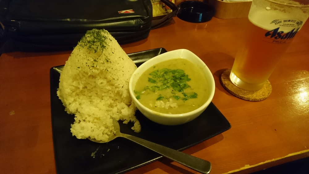 いつものカレー 食いしん坊Jr. 2017年05月25日 いつもお世話になっている。新横浜のオリエンタルテーブル(オリテー)で、頻繁にグリーンカレーを食べています。この日はサービス?で、マウンテン山盛りのごはんに、パクチーが大量に入っていました。 ピリ辛でコクのあるグリーンカレーは、ビールに良く合います。さすがにお腹がいっぱいになりました。ごちそうさまでした。souhei PR