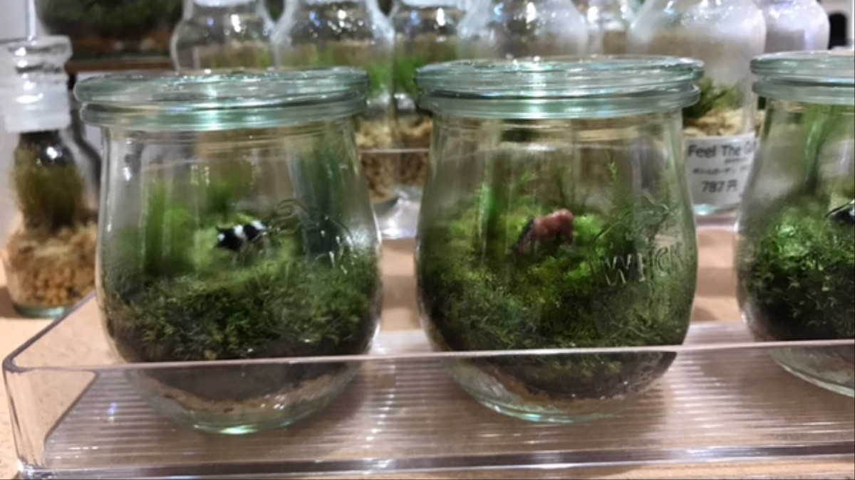 苔のテラリウム 所員の発見 2017年10月31日 物語を閉じ込めた観賞用の苔に面白みを感じ、思わず撮影しました。 地味に思える苔ですが、どんな環境でも生き延びるタフな植物であり、数週間に一度の水やりをすれば良いため、とても育てやすい植物と言われています。100円ショップのもので手軽に作成できます。是非オリジナルを作ってみてください。また、苔は中国医薬として利用され、インフルエンザやがん細胞に効果を抑制する効果があるそうです。日本でも薬として利用される日がくると良いですね。hikaru PR