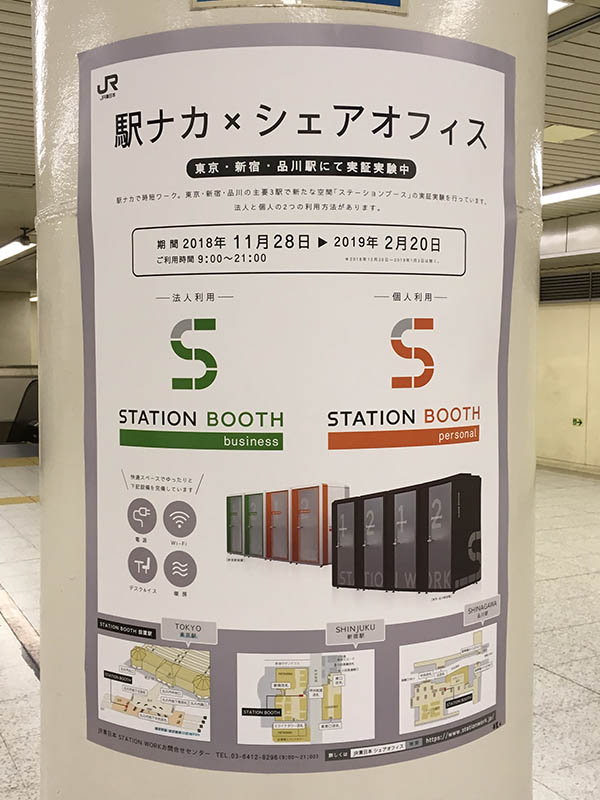 ボックス 未選択 2019年01月17日 東京駅で見つけた奇妙なボックス。公衆トイレ?試着室?答えは近くのポスターに書いてありました。駅ナカ シェアオフィス。平たく言うと作業ブースのようです。只今、実験期間中とのこと。将来的には有料サービスとして、多くの駅に設置することを視野に入れているのでしょうか。作業空間としてではなく、漫画喫茶のように一休みするためにも利用できそうです。kaisei PR