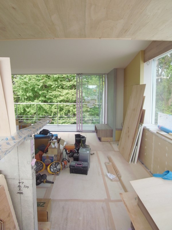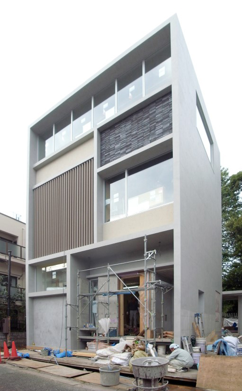 駒沢の家(9) 現場報告 2019年10月03日 駒沢の家はついに建物を覆っていた足場が外れました。施工を進めていて、オーッ!と高揚する瞬間です。 黄金比でカタチ造られた端正なフレームと散りばめられた素材感が互いに引き立てあっています。内装もどんどん進んできています。こちらも近々養生が外れる予定なので楽しみです◎mogi PR