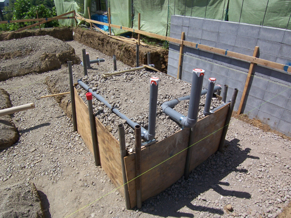 現場報告(2) 現場報告 2008年07月28日 「鎌倉の家」の現場報告。ただ今、基礎の根切りが終了し、基礎下を通る配管の設置をしています。この上からコンクリートを流す為、動かないようにしっかり固定することが重要です。炎天下の中での作業、ご苦労様です。by koji PR