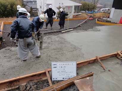鴨川の家(19) 現場報告 2012年02月21日 現場では、外構工事が進んでいます。写真は、駐車場の土間コンクリートを打設している状況です。この後は、最後に植栽を植え工事が完了する予定です。by koji PR