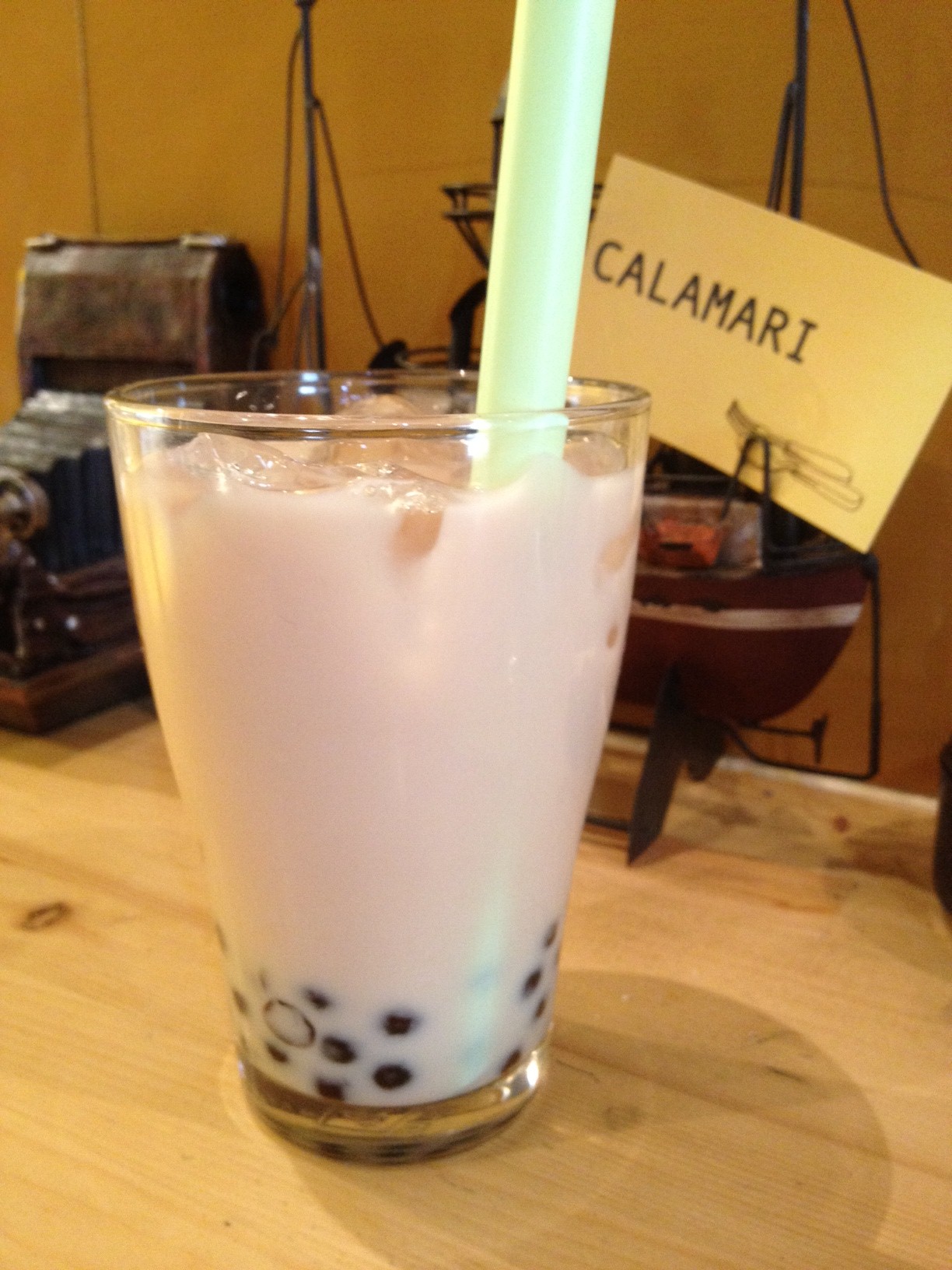 CALAMARI 食いしん坊Jr. 2012年04月18日 【CALAMARI】という大学時代からよく通っているお店に新メニューが出来たと聞いたので行って来ました1つ目の新メニューはタピオカ30種類のドリンクから選べるのですが人生初タピオカなので定番のココナッツミルクティーをチョイス個人的にはちょっと甘すぎました…次はもう少しさっぱりしたやつを選んでみようと思います2つ目はトムヤムチキン酸味が効いてて美味しかったです新メニューは他にも幾つかあるので次の機会にチャレンジしたいと思いますいい雰囲気のお店なので気になった方はぜひ行ってみてくださいiwanami PR