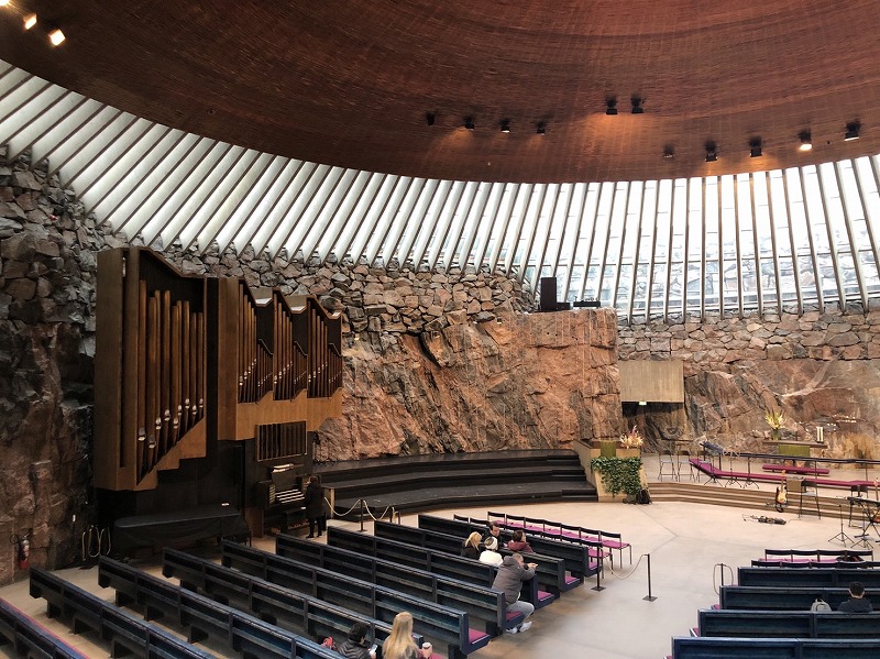 テンペリアウキオ教会 建物探訪 2019年10月11日 妹からフィンランド旅行の写真が送られてきました。スオマライネン兄弟設計の『テンペリアウキオ教会』です。外観は、周囲をアパート群に囲われた小高い丘のよう。丘の一角にある入口から内部に入ると、写真のような教会が現れ、その空間の展開に驚かされます。実は私も以前に訪れたことがあり、フィンランド旅行で最も印象的だった建築です。同じ場所に数年の年月を経て妹が足を運び、あの時見たままの教会の写真が送られてくるという不思議な感覚と、当時の思い出に浸ってしまいました。kaisei