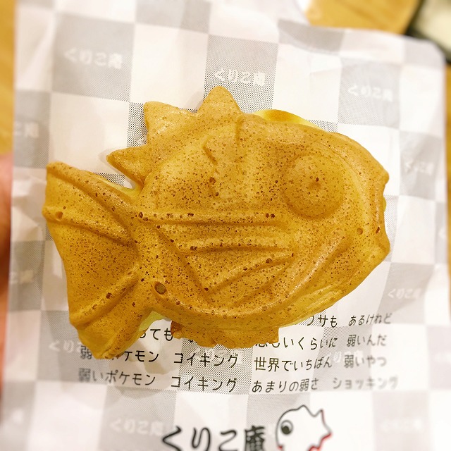 コイキング焼き 食いしん坊Jr. 2019年10月17日 くりこ庵限定のたい焼き、「コイキング焼き」を食べてきました。 その名の通り、ポケモンでおなじみのキャラクター「コイキング」を完全再現。見た目のインパクトだけでなく、厚みも普通のたい焼きの倍近く、食べ応え満点。気になった方は是非お試しください。kaisei