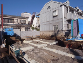 大倉山の家(2) 現場報告 2010年12月18日 しばらくぶりの現場報告。現場では地盤改良をするために、土を掘っています。今回は「スーパージオ工法」といったものを使います。写真に白く見えるのは地盤安定シートという物です。この作業の様子はまた後日。今回は事務所から現場が近いので、ぽかぽかと晴れた日には、現場まで自転車で通うことになりそうです。yama