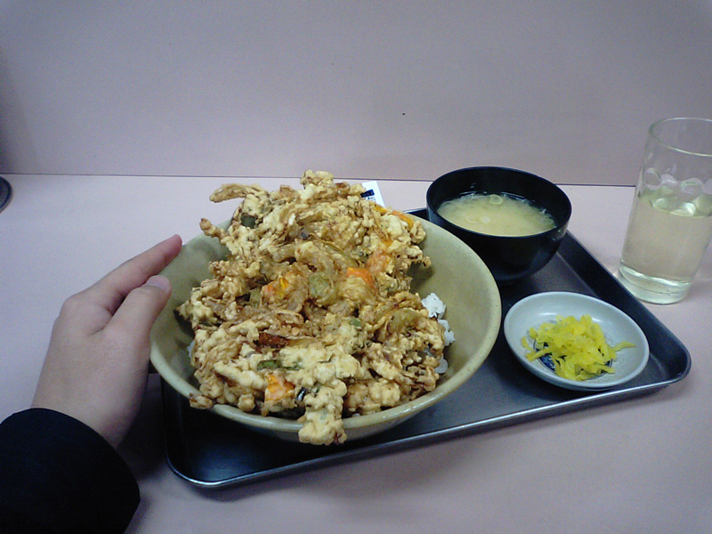 大食い 食いしん坊Jr. 2010年12月18日 先日、先輩所員の山川さんの一押しの大盛りの食堂「市場食堂 秋葉屋」へ行ってきました。横浜中央卸売市場の中にあり市場で働く人はもちろん大食いに自信のある猛者たちがよく来るとの事です。私が注文したのは、「かきあげ丼」もう見るからに尋常じゃない量です。かきあげが顔の大きさくらいあります。ちなみにご飯は、400グラム!山川先輩は「牛レバー定食」を注文。ご飯が…昔話みたいにてんこ盛り…このご飯は650グラム!格闘すること、十数分…死にそうな思いをしながら完食!隣の山川先輩はケロっと食べてました。もう、おなかパンパンで、夕食は食べれませんでした…MIZUNO