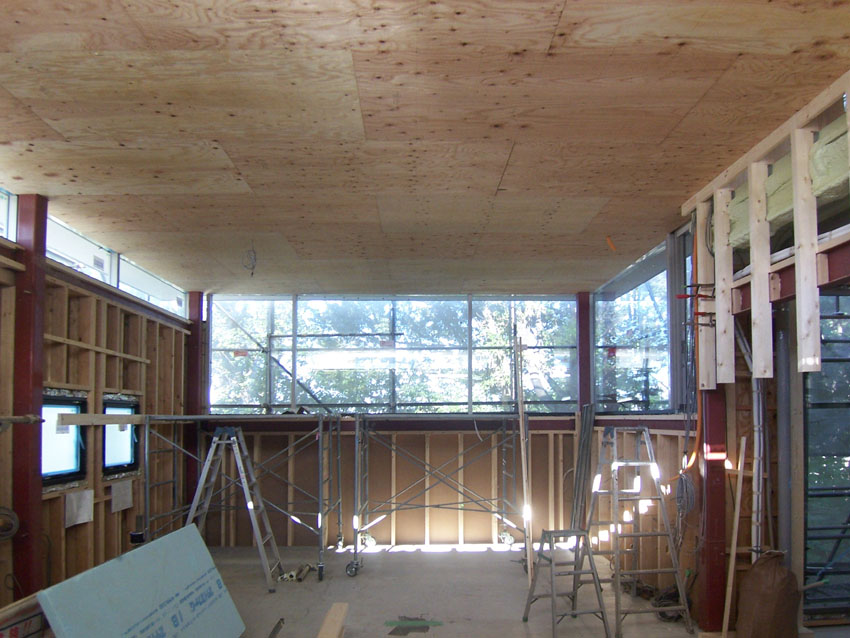 フォレストハウス(10) 現場報告 2010年09月28日 久し振りの現場報告。現場では、内装下地工事が進んでいます。写真は、2階リビングです。天井が閉じられたことで、とても、スッキリとした印象になりました。ちなみにこのカットが建物のメインカットになる予定です。by koji