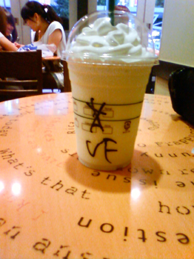 最近の休日のひととき ひとりごと 2010年08月31日 最近の休日は時間をみて、スターバックスに通っています。隣に座っている水野君のスターバックスに対する熱い情熱に押されてしまいました。そこでいただくドリンクはもちろんメニューには無い特注品です。スタバ通だけが知っている特別メニューが多々あるらしいのです。特注品をたのんだときの店員さんの表情が微妙に変化する瞬間がうれしかったりします。写真は杏仁フラペチーノという特注品です。かなり美味しいのでぜひ味わってみて下さい。喫茶店なんて、自分の柄に似合いませんが、好きな小説を読みながらすこしリッチなひと時を味わっています。shimada
