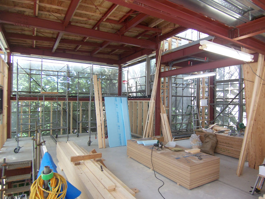 フォレストハウス(8) 現場報告 2010年07月31日 久しぶりの現場報告。その間、現場は着々と進んでいます。先日、サッシが設置されました。写真は、5枚片引きの木製サッシです。約4mの大開口には、圧巻です!by koji