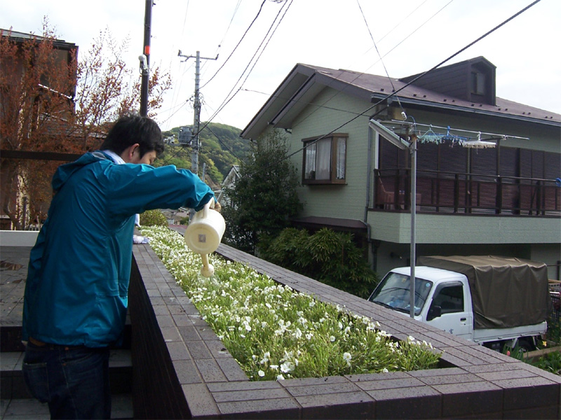 白い花 未選択 2010年04月28日 先週末は、写真の撮影のため「葉山の家」に行きました。撮影前は、掃除と棚に入れるための小物の搬入そして、花壇一面に白い花を植えていきました。日曜日は天気に恵まれ雲一つない青空の下、撮影が行われました。湘南の海と山を眺める大開口に、ハイサイドの採光によって光に満たされた室内。内部は、刻一刻とその表情を変えていき息つく間もなく、一日の撮影が終わってしまいました。MIZUNO