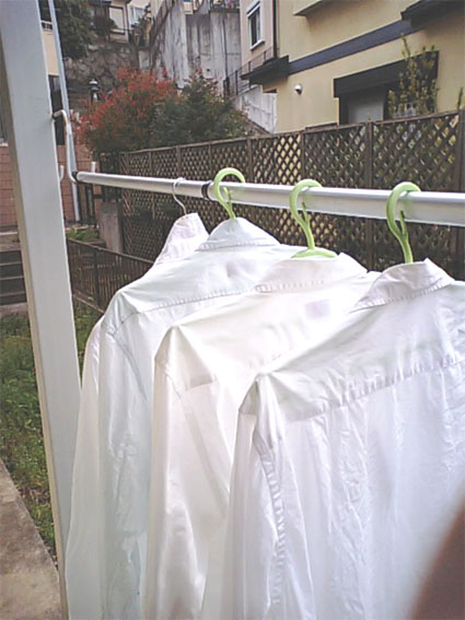 洗濯日和 未選択 2010年04月14日 先週の日曜日は清々しく、気持ちの良い天気でした。桜は散りつつ、風に舞い、その美しさから一時の癒しをいただきました。天気がよかったので慣れない洗濯に苦戦しつつもたまりにたまった洗濯物を干しました。かなりの量だったので、物干し竿が反ってしまい折れるのではないかとヒヤヒヤしていました。一人暮らし3週間目、食器洗い、トイレ掃除、洗濯などなど実家では、まったくやったことのない家事を通して改めて親のありがたみを感じています。MIZUNO